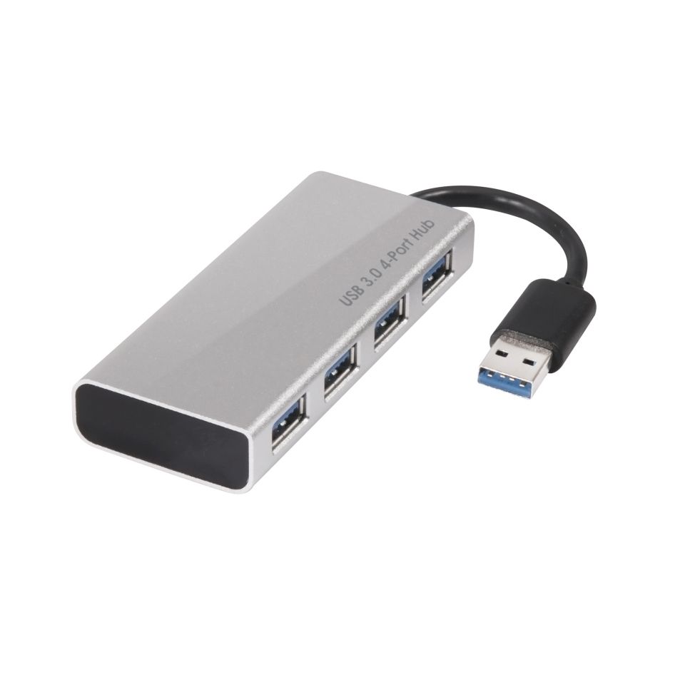 CLUB3D USB 3.0 Hub 4-Port with Power Adapter. Connectivity technology: Docking, Host interface: USB 3.2 Gen 1 (3.1 Gen 1) Type-A, USB connector: USB Type-A. Product colour: Black, Silver, Data transfer rate: 5 Gbit/s, Certification: FCC, CE, ROHS. Power supply type: AC, USB, Output voltage: 5 V, Output current: 4 A. Supported Windows operating system: Windows 10. Width: 91 mm, Depth: 16 mm, Height: 45 mm
