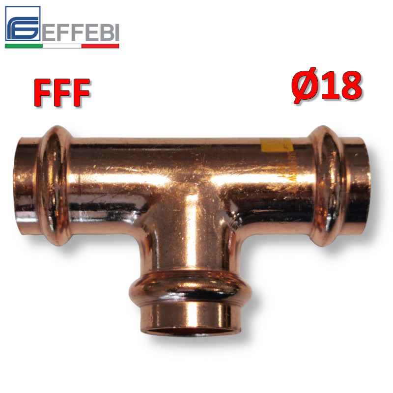 FFF Ø 18x18x18 mm T-piece - UNIQUE press-fit copper for water and gas