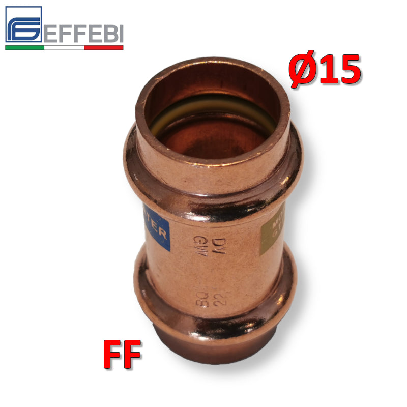 Straight fitting with FF sleeve Ø 15 mm - UNICO press-fit copper for water and gas