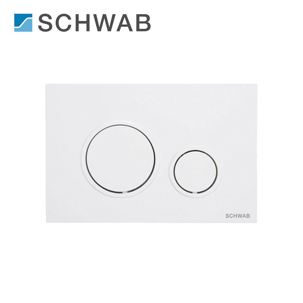 Placca di comando doppio tasto VELA DUO bianca con anelli cromo, per cassette wc 199 SCHWAB