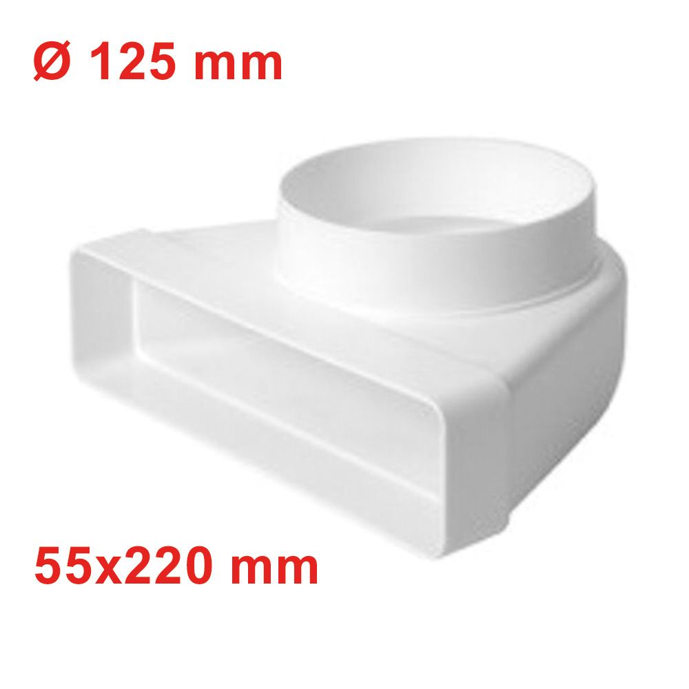 Raccordo gomito 90° in plastica per condotto aria rettangolare circolare 55x220 - Ø 125 mm per VMC cappa cucina
