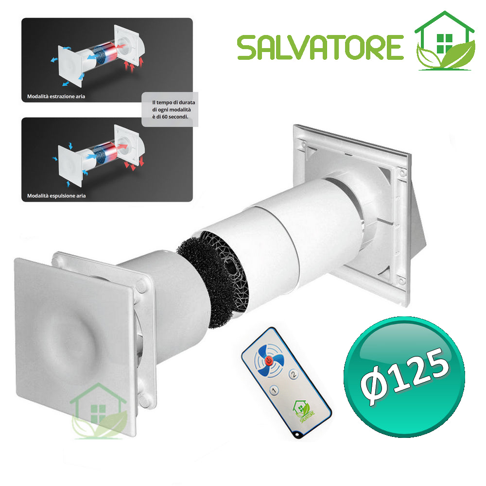 SALVATORE IL RECUPERATORE DI CALORE monostanza con telecomando Ø125 - ventilazione meccanica controllata