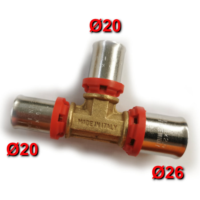 Multistrato pressare - Raccordo a TEE ridotto Ø 26 x 20 x 20 mm