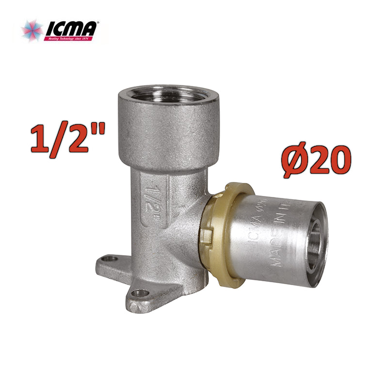 ICMA 410 - Raccordo a pressare gomito con staffa 1/2'' femmina x Ø20 SEMPITER®
