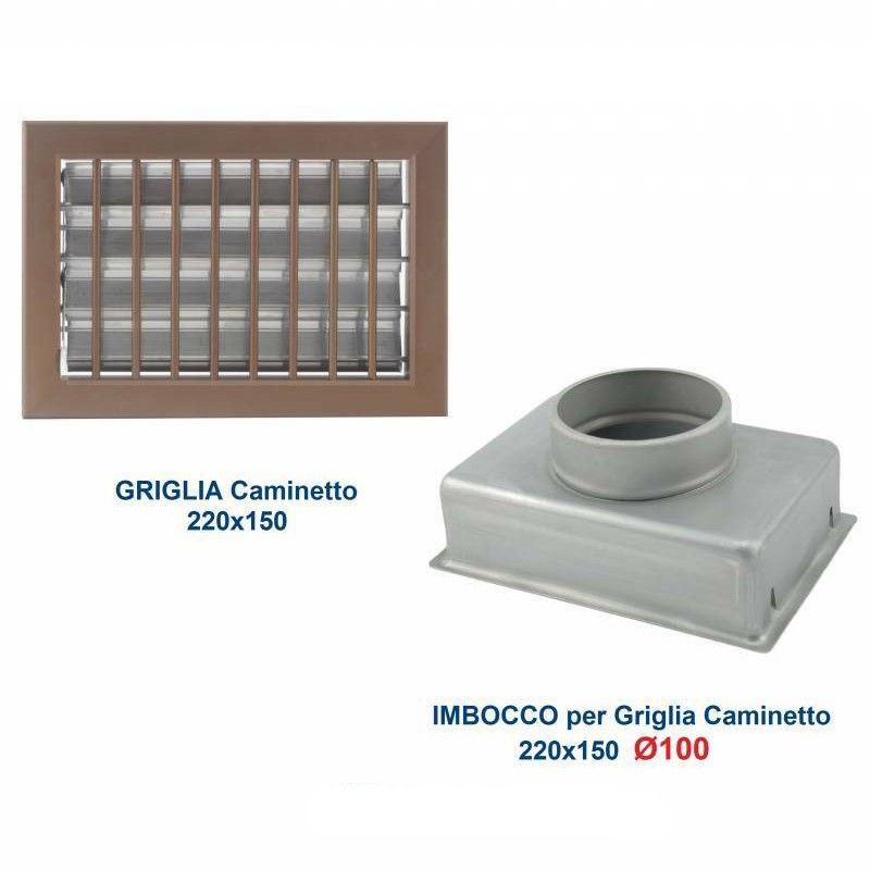 Griglia Bocchetta 22x15cm BRONZO Diam.100mm con Adattatore per Camino