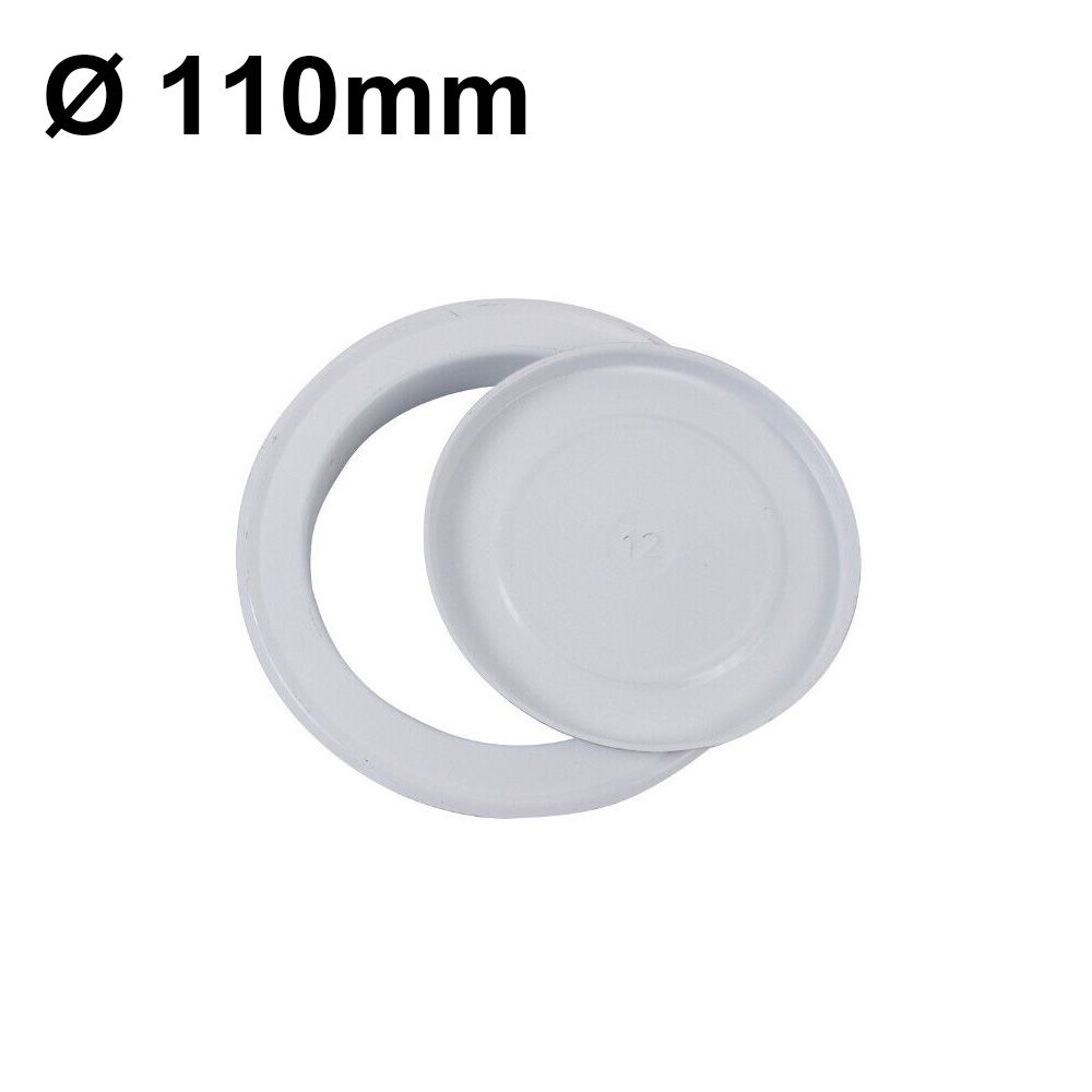Rosone coprimuro in metallo colore bianco con tappo per tubi Ø 110mm