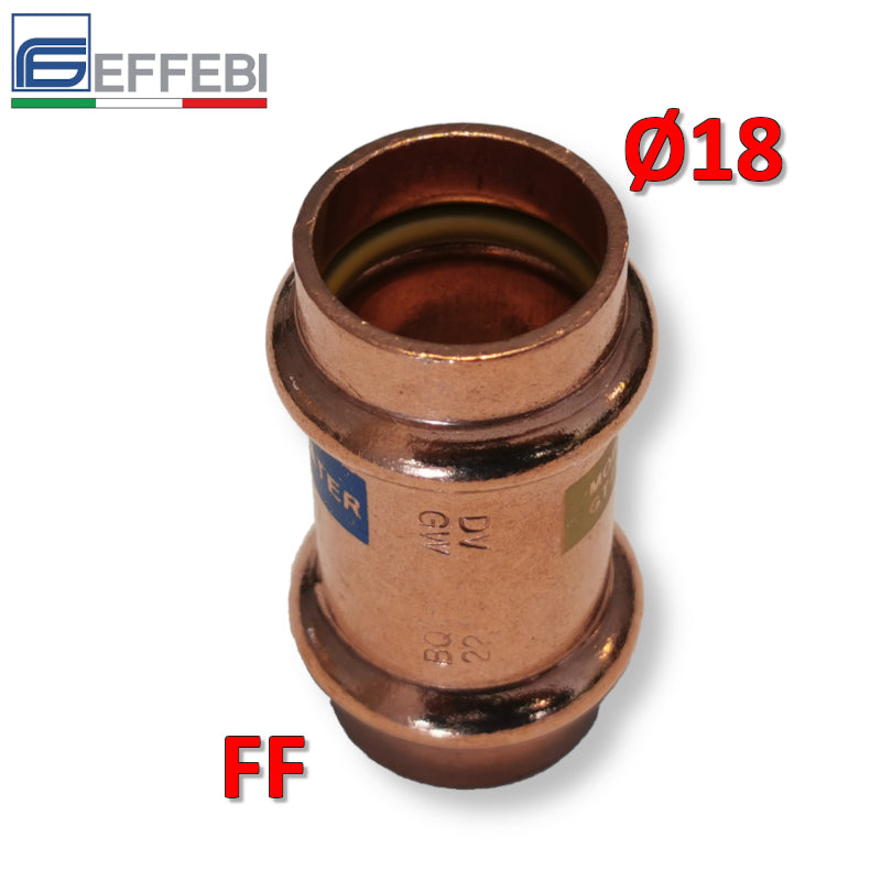 Raccordo dritto manicotto FF Ø 18 mm - rame a pressare UNICO per acqua e gas