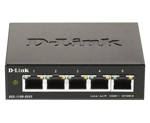 D-Link DGS-1100-05V2. Tipo di porte RJ-45: Gigabit Ethernet (10/100/1000), Quantità di porte RJ-45: 5. Capacità di commutazione: 10 Gbit/s. Voltaggio input DC: 5 V