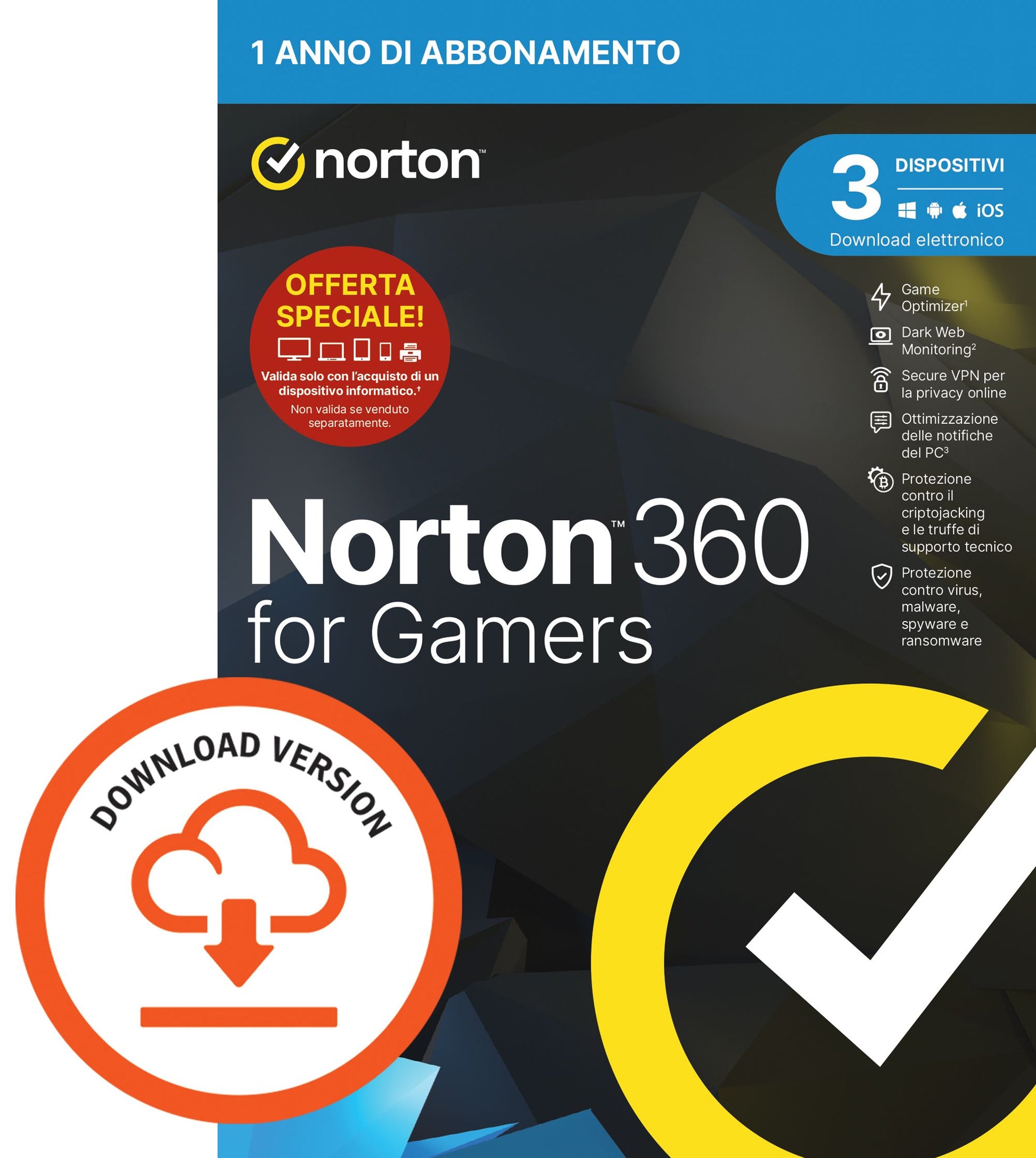 NORTON 360 FOR GAMERS 50GB IT 1 USER 3 DEVICE 1Y ATTACH VECCHIO CODICE 21416227