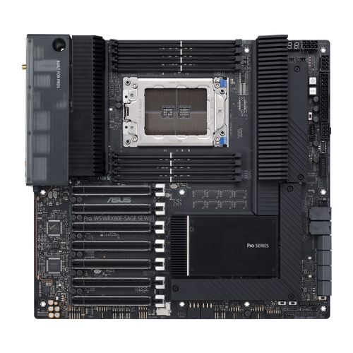 ASUS WRX80E-SAGE SE WIFI. Produttore processore: AMD, Presa per processore: Socket SP3, Processori compatibili: AMD Ryzen Threadripper Pro 3rd Gen. Tipi di memoria supportati: DDR4-SDRAM, RAM massima supportata: 2048 GB, tipo di slot di memoria: DIMM. Interfacce dell'unità di archiviazione supportate: SATA III. Tecnologia di processo parallela: 2-Way SLI,3-Way SLI,4-Way SLI. Tipo di interfaccia Ethernet: 10 Gigabit Ethernet, Controller LAN: Intel X550-T2, Wi-Fi standard: Wi-Fi 6 (802.11ax)