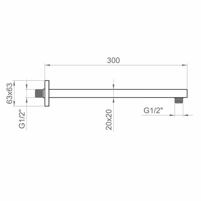 Braccio doccia quadrato L. 300 mm in ottone cromato - Ponsi