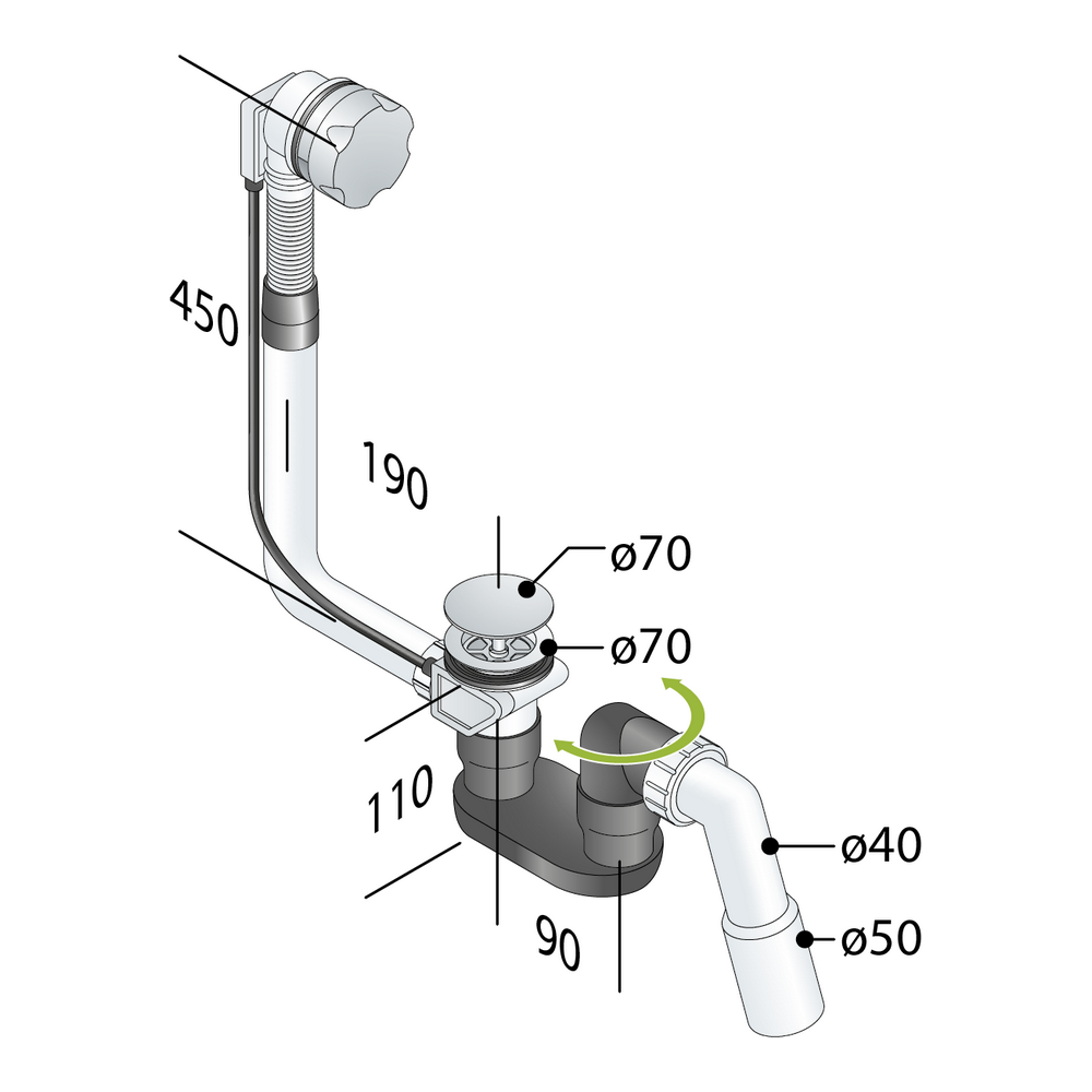 Piletta vasca con comando a cavo in PP