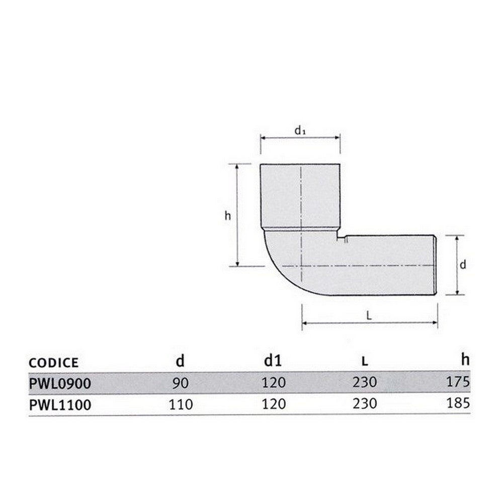 Curva 90� per WC ? 90 mm per scarico ad innesto prolungata