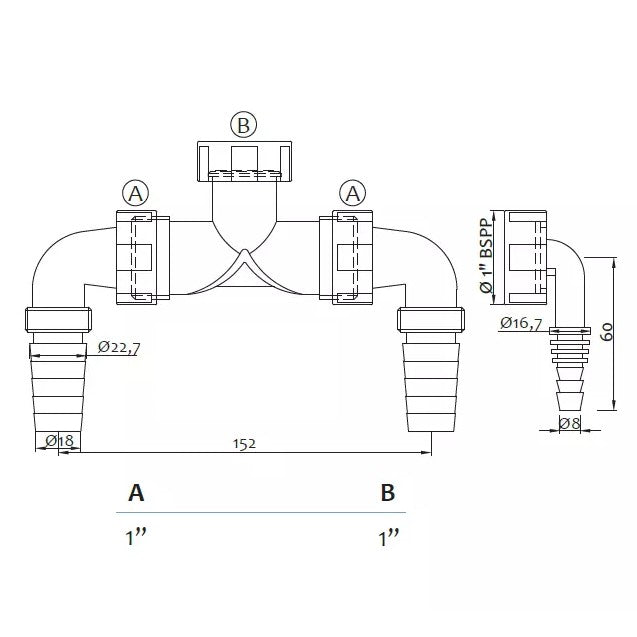 Doppio raccordo di scarico 2 attacchi 1'' per lavatrice , asciugatrice , climatizzatore e caldaia