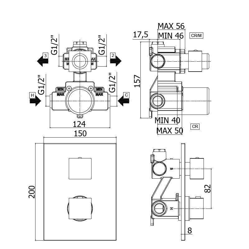 Miscelatore doccia incasso termostatico con deviatore 2 uscite LEQ518 CR