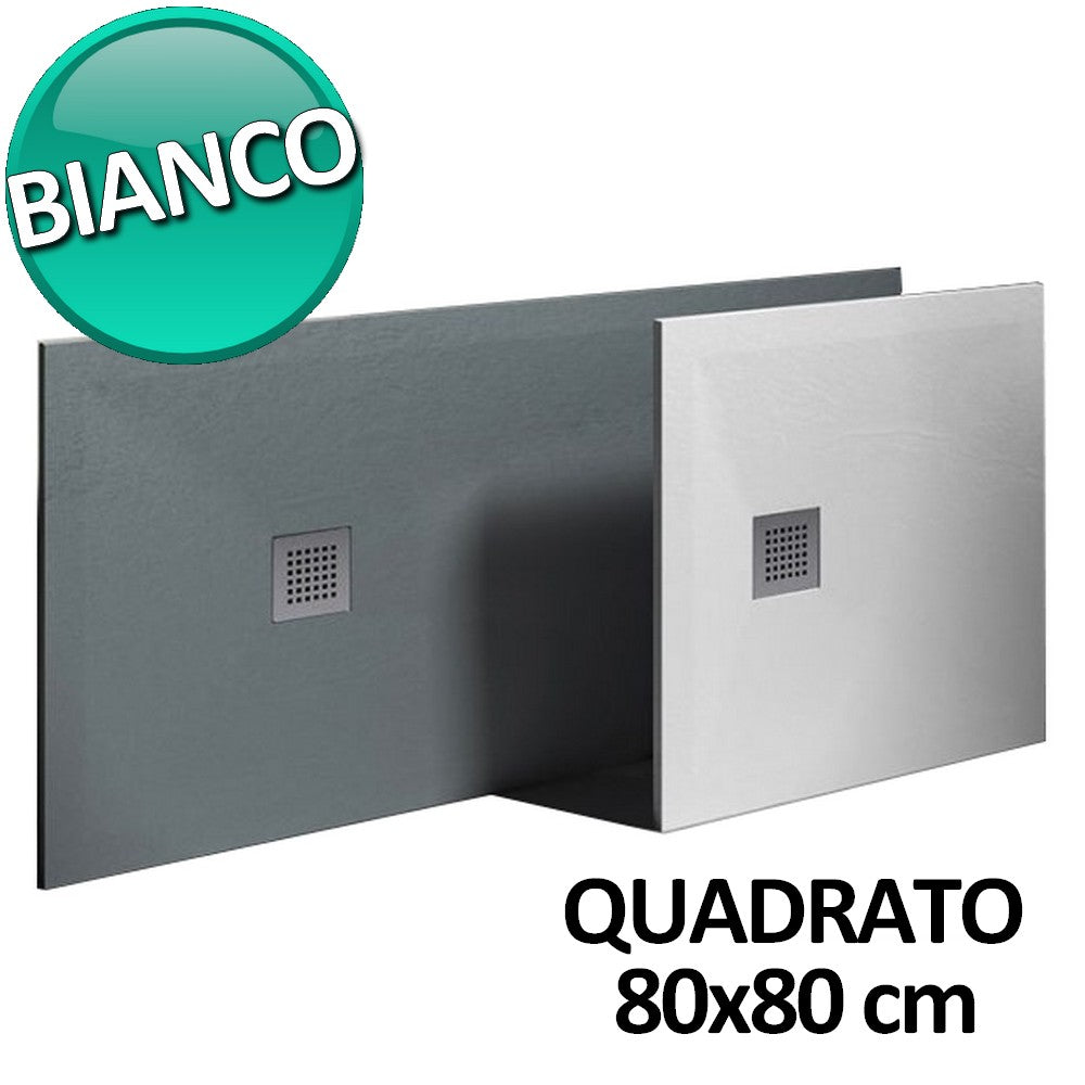 Piatto doccia 80x80 in resina e gelcoat effetto pietra - Colore Bianco