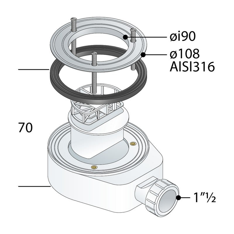 piletta ø108 inox AISI316