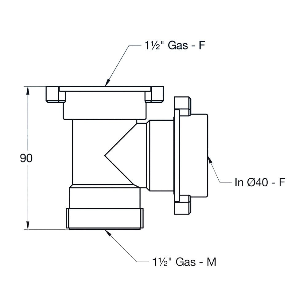 Raccordo a Tee per sifone 1''1/2 cucina LIRA per attacco supplementare scarico condensa - lavatrice - lavastoviglie