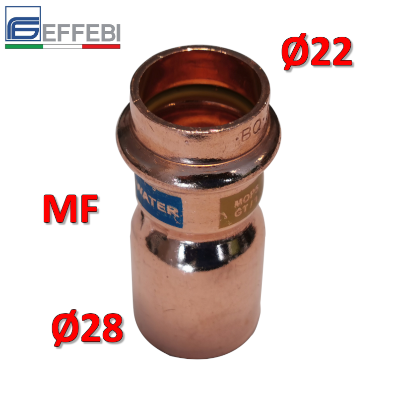 Raccordo dritto ridotto riduzione MF ? 22 x 28 mm - rame a pressare UNICO per acqua e gas
