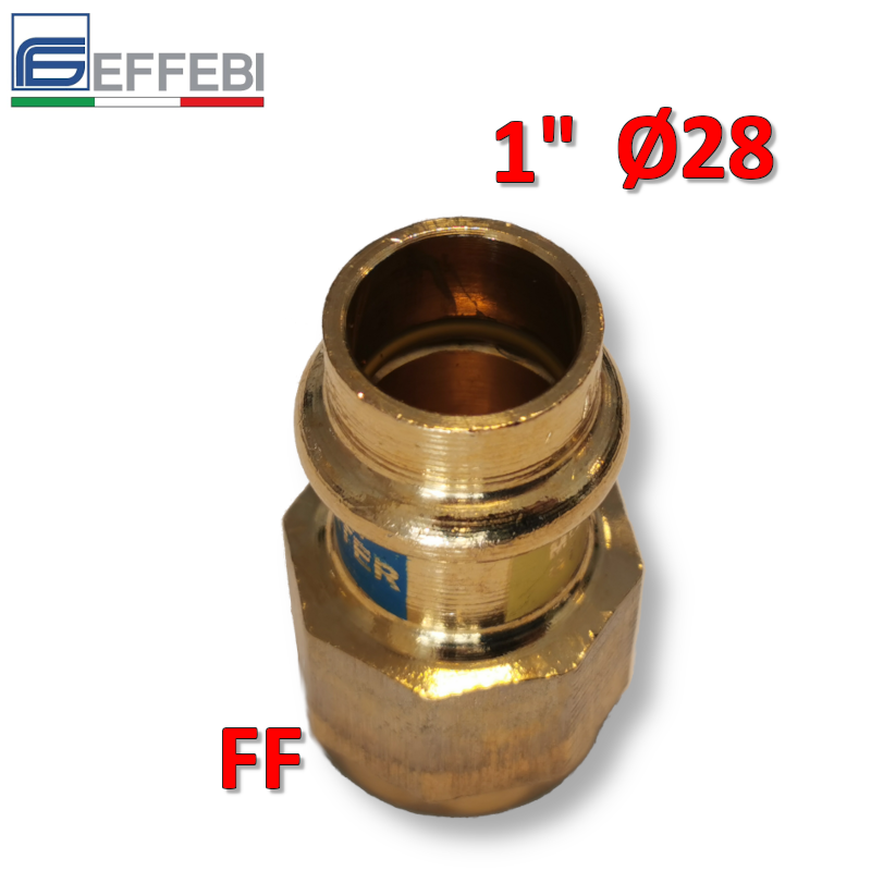 Raccordo in bronzo dritto Femmina 1'' x ? 28 mm - rame a pressare UNICO per acqua e gas