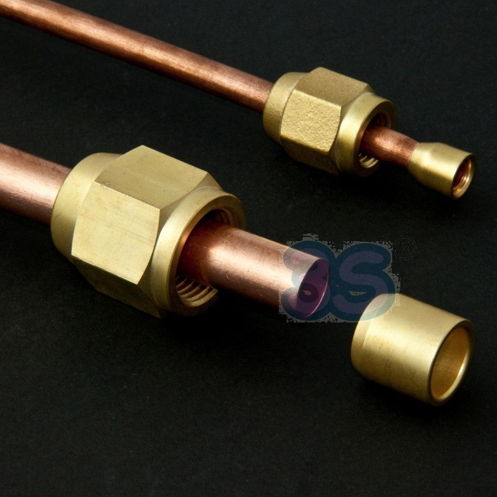 Pratico, sicuro ed innovativo raccordo diritto che permette la connessione delle due estremità del tubo di rame o alluminio senza la classica cartellatura. Ogni singolo kit è composto da raccordo e bocchettoni appositi ed è universale sia per il tubo con spessore 0,80 che 1,00 mm. Connessioni veloci e senza rischi con una semplice rotazione e mezza sul bocchettone!