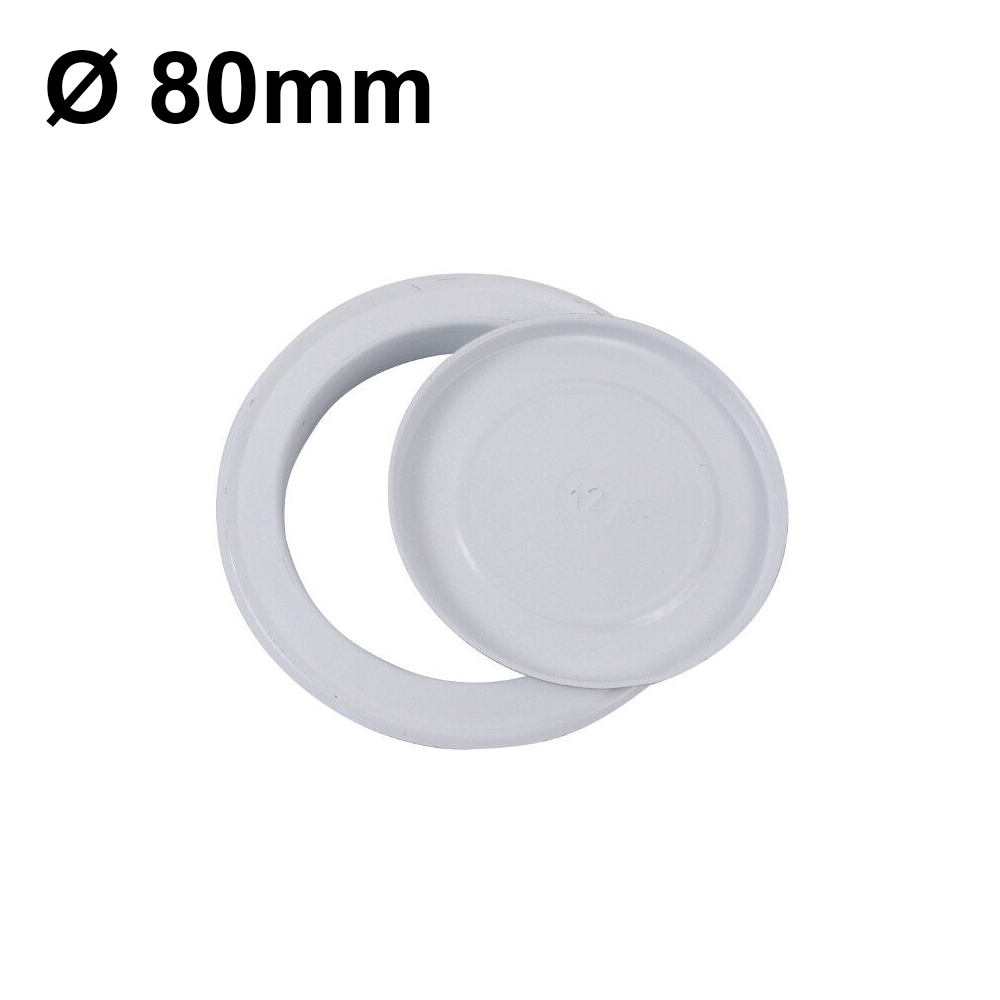 Rosone coprimuro in lamiera colore bianco con tappo per tubi ? 80mm