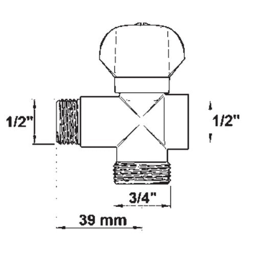 Rubinetto lavatrice 3 vie - 1/2'' x 3/4'' x 1/2'' M-M cromato