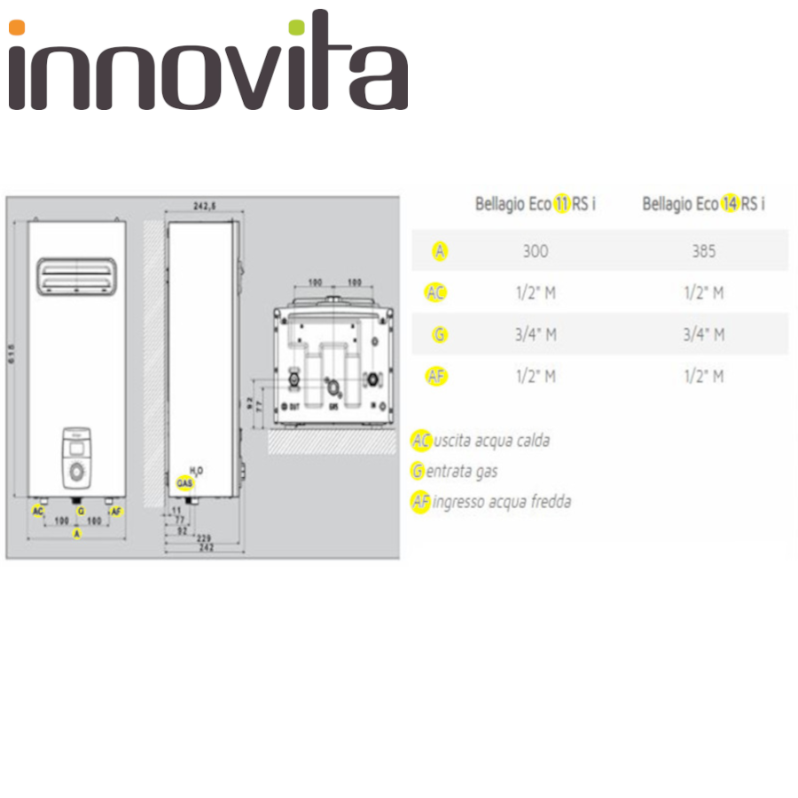 SCALDABAGNO INNOVITA BELLAGIO ECO 11 RS I MTN scaldabagno a camera stagna da esterno - senza scarico fumi