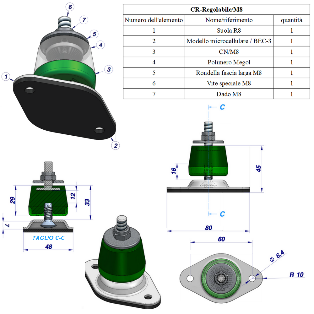 ANTIVIBRANTE IN MEGOL A BASAMENTO REGOLABILE