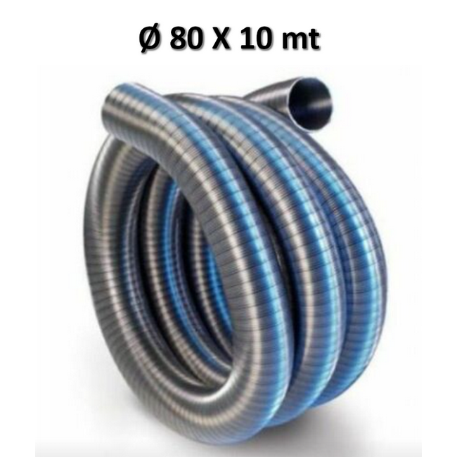 Tubo flessibile in acciaio ? 80 mm lunghezza 10 mt - canna fumaria parete interna liscia